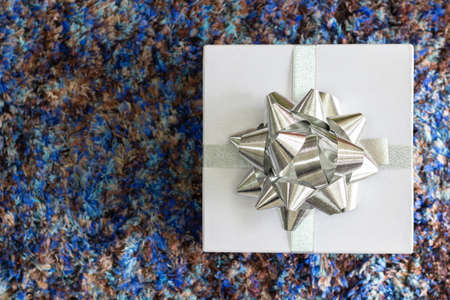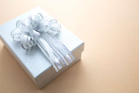 Silver gift box with ribbon and bow