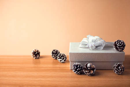 A gift box for someone special, tied with a ribbon, placed on the floor Ideas to welcome the upcoming Christmas season.