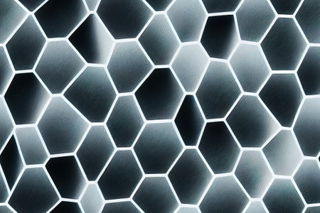 Sleek hexagonal patterns create modern and futuristic design, showcasing reflective surfaces that enhance depth and dimension. interplay of light and shadow adds captivating visual effect