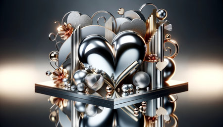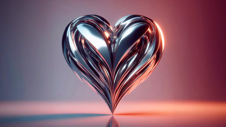 Valentine's Day geometry design with metallic and mirrored elements. Modern design of chrome heart.