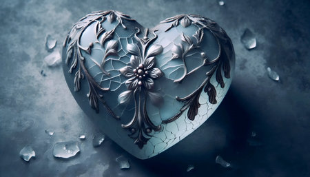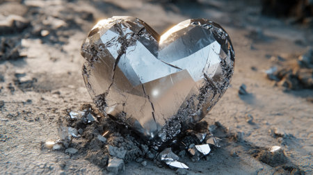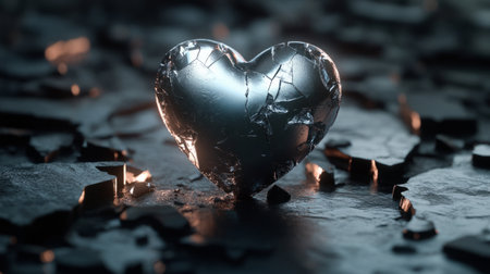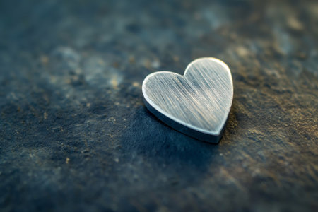 Close-up of a minimalist metal heart symbol on a gritty surface, conveying romance