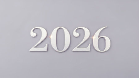 Metallic numbers representing the year 2026 displayed on a smooth dark fabric surface