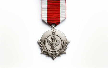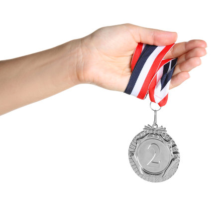 In a high-quality photo, a gleaming silver medal shines, symbolizing the triumph of second place. Witness the spirit of competition and honor in this close-up shot of sporting achievement