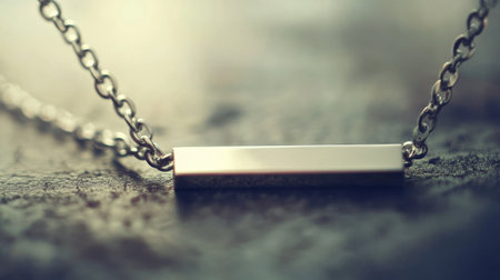 This close-up image features an elegant silver necklace showcasing a minimalist design, resting on a textured surface ideal for fashion and jewelry displays.