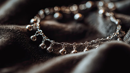 This close-up image features a beautifully designed silver bracelet adorned with charming details, resting elegantly on a soft velvet fabric, showcasing luxury and style.