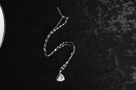 A delicate silver chain rests on a dark stone surface, capturing the interplay of light and texture. Its exquisite design highlights the elegance and simplicity that enhance any jewelry collection.