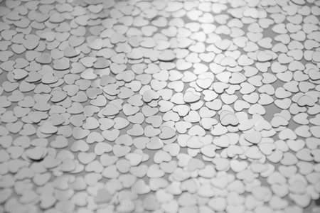 Hearts sparkles Valentines day background. Black and white photo. Grey love background photo can be used for web design, wallpapers, printed products and other.