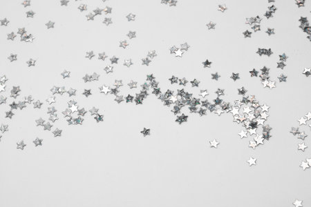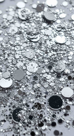 Luxury festive background with silver sequin fabric and soft glitter texture. Elegant shimmering backdrop ideal for holiday design, greeting cards, banners, marketing materials and celebrations.