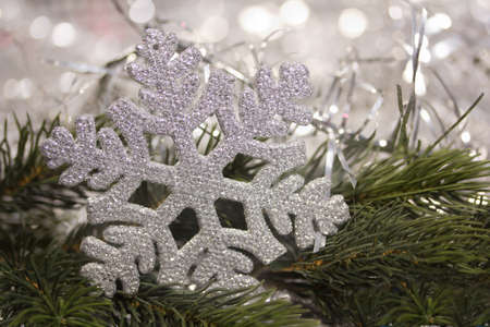 branch of Christmas tree with snowflake