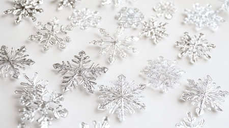 Beautiful frosted snowflakes arranged on a soft beige background, perfect for capturing the essence of winter and enhancing seasonal decorations.