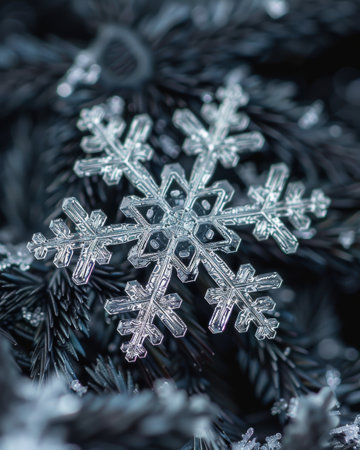 Intricate snowflake crystals on a dark background