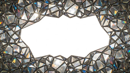 A frame composed of sharp crystal facets with a white central area and brilliant light refractions.