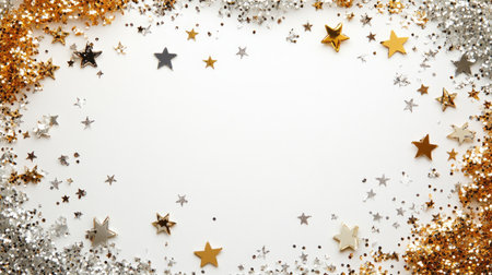 A vibrant arrangement of sparkling gold and silver stars, creating a festive atmosphere. Perfect for celebrations, events, or creative projects needing a touch of glamour.