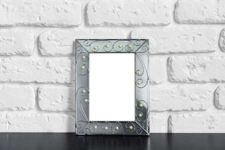 Photo frame with copy space against white brick wall