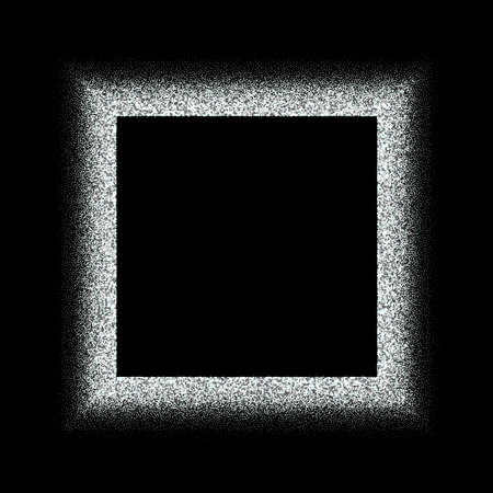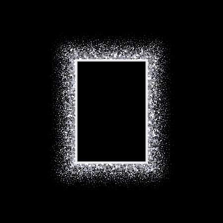Festive silver sparkle background. Glitter border, square frame. Vector dust, diamonds, snow on black. Great for valentine, christmas and birthday cards, wedding invitations, party posters.