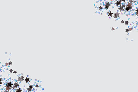 Elegant silver and white glitter sparkle confetti background border for happy birthday, anniversary, winter, Christmas or wedding party invite