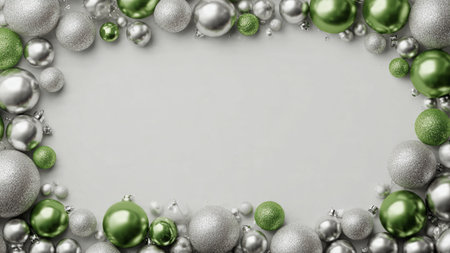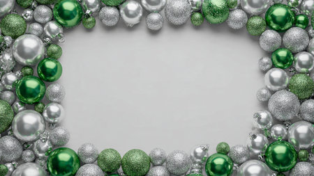 A premium visual frame combining structured green baubles and chrome-finished silver spheres.