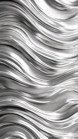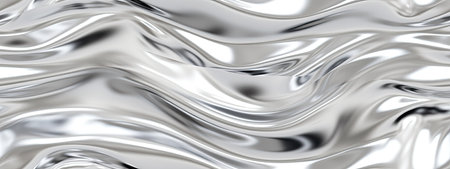 Shiny metallic waves with smooth flowing texture in abstract silver background design