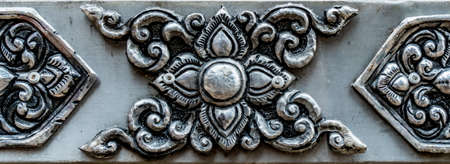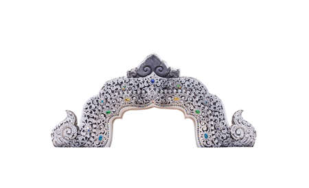 Antique stucco on entrance arches with thai art patterns in temple isolated on white background