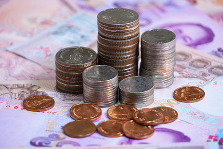 Thai baht, money, Thai coin.Money thai coins ( bath) staircase sorted. King of Thailand. The concept of financial planning, savings, Busines successful, Busines progress.