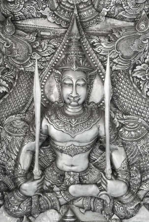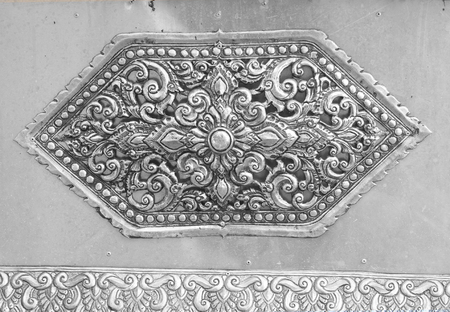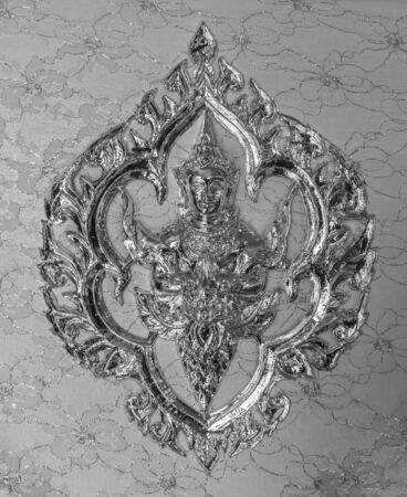 Pattern art processing of sculpture image carvings on wood background. Thai style carved wooden door detail, Close up,black and white