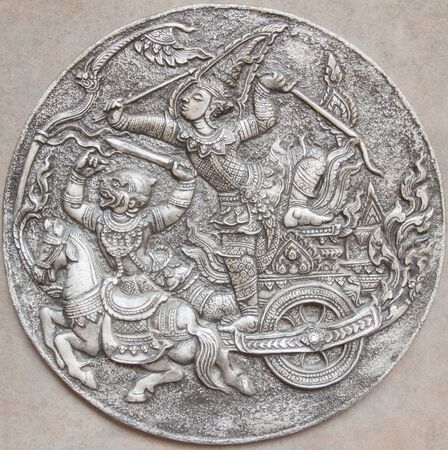 Ramayana wall art at wat khaowong, saraburi , Thailand
