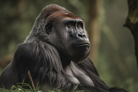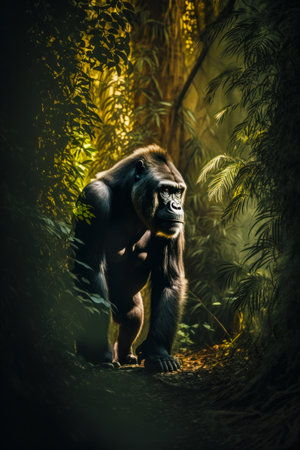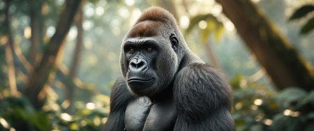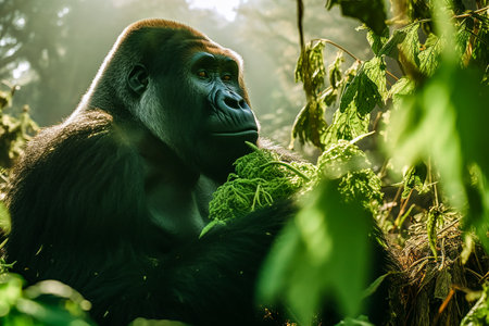 AI Generated. Majestic Gorilla in Serene Jungle Setting