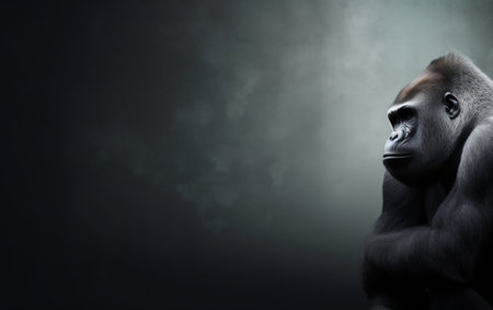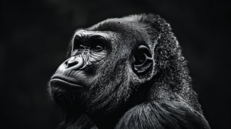 low key portrait of gorilla on black background with copy space, low key