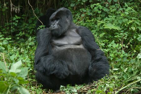 A close up on a gorilla sitting in the forest, Rwanda
