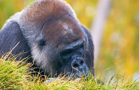 Close-up portrait of a gorilla in the wild, the gorilla is the largest ape.