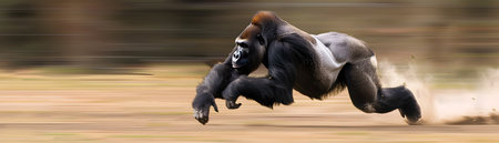 A muscular and powerful gorilla races down a track with incredible speed and determination leaving its competitors in a blur of motion behind it The image captures the raw energy and athleticism of