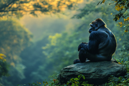 Gorilla sunset forest pensive primate wildlife