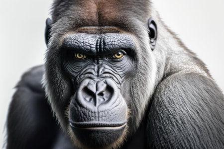 Close up of Gorilla white background. Generative AI AIG16.