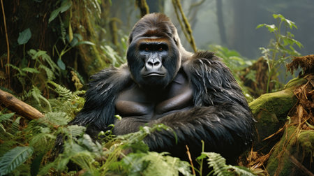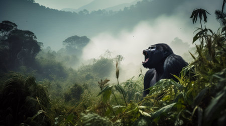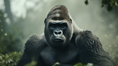 gorilla in the misty forest, surrounded by nature, created with generative ai