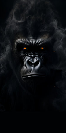 gorilla dangerous look dark background.