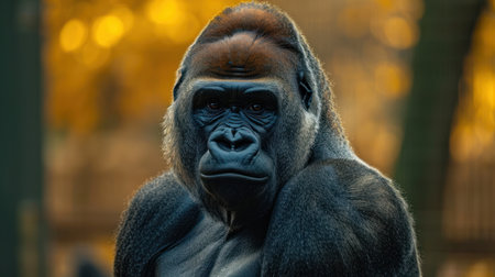 Portrait of a strong male gorilla in front of a golden background