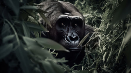 Giant gorilla hiding in the weeds Illustration Generative AI