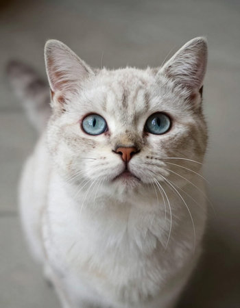 Portrait of a white cat with blue eyes on a gray background