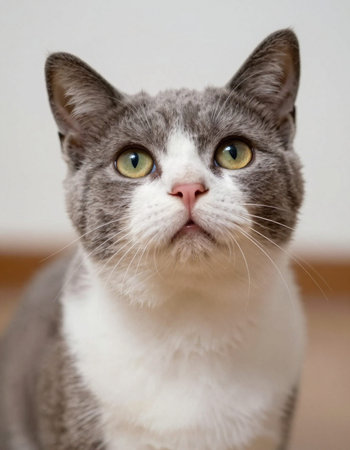 portrait of a gray cat with yellow eyes on a light background