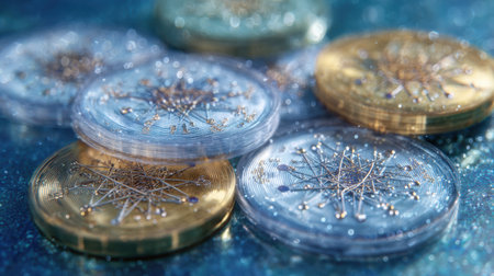Close up of digital Cryptocurrency coins