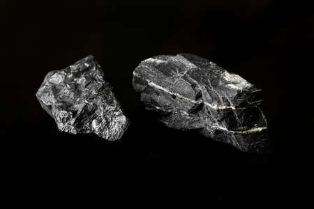 Coal sample on black background close up