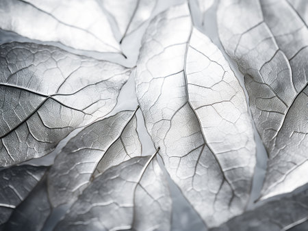 abstract background of silver leaf texture close-up, macro photography