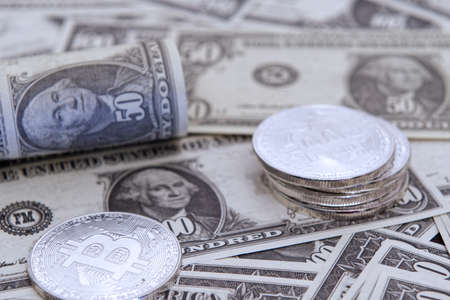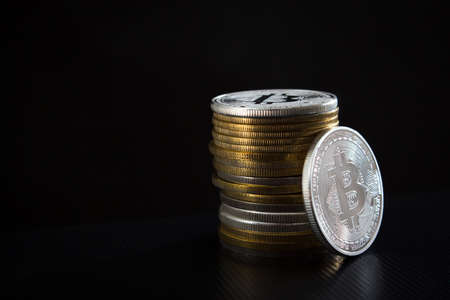 Close up coins of cryptocurrency market business exchange and finance concept.