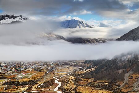 Silverton the small town in San Juan mountains, foggy morning, Colorado, USA