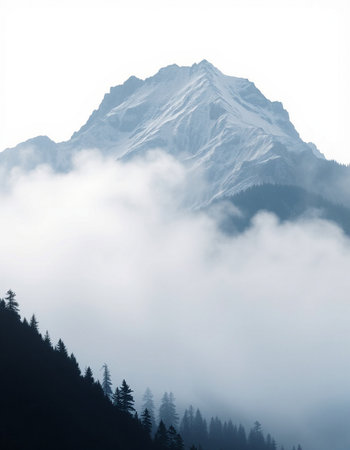 Mountains and forest in the fog on a cloudy day, Switzerland