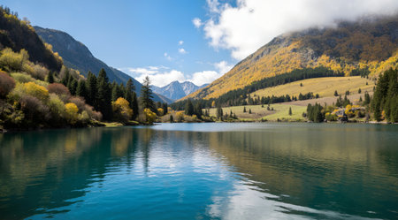 Autumn alpine lake. Colorful alpine landscape with lake and forest.