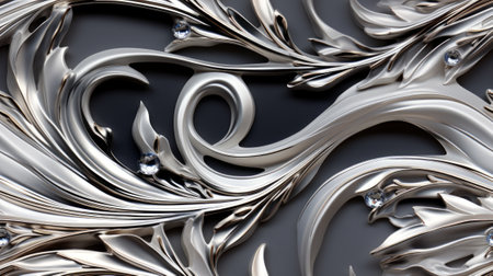 Explore the beauty of intricate silver floral patterns with elegant leaves and detailed embellishments, ideal for artistic projects and decorative applications.
