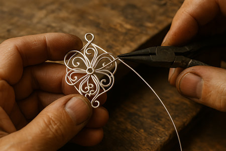 Artisan Shaping Delicate Silver Wires into Jewelry