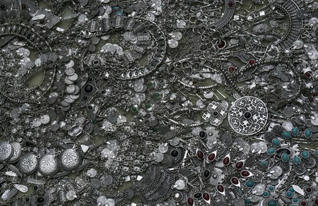 background, texture of many different shapes and sizes of metal and silver jewelery