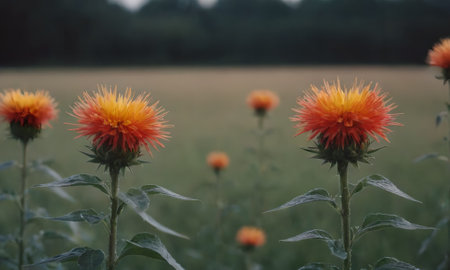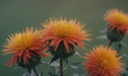 Yellow flower macro background carthamus tincorius family asteraceae high quality print
